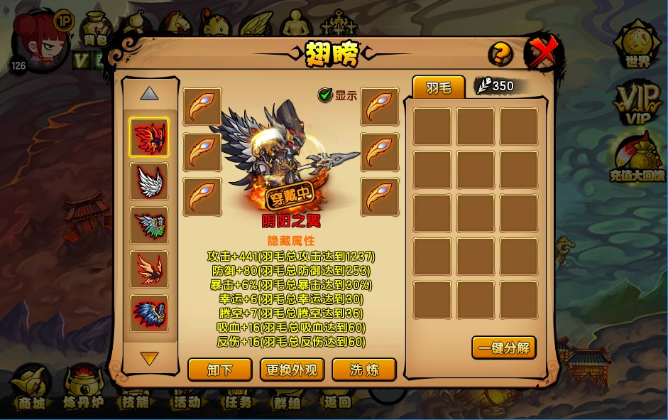 - 修复宠物实时出战和羽毛洗练实时刷新。