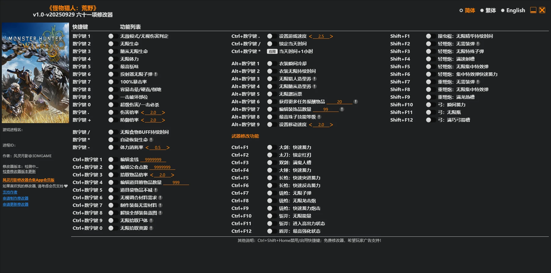 61 个选项・游戏版本:v1.0-v20250929+・最后更新:2025.09.29