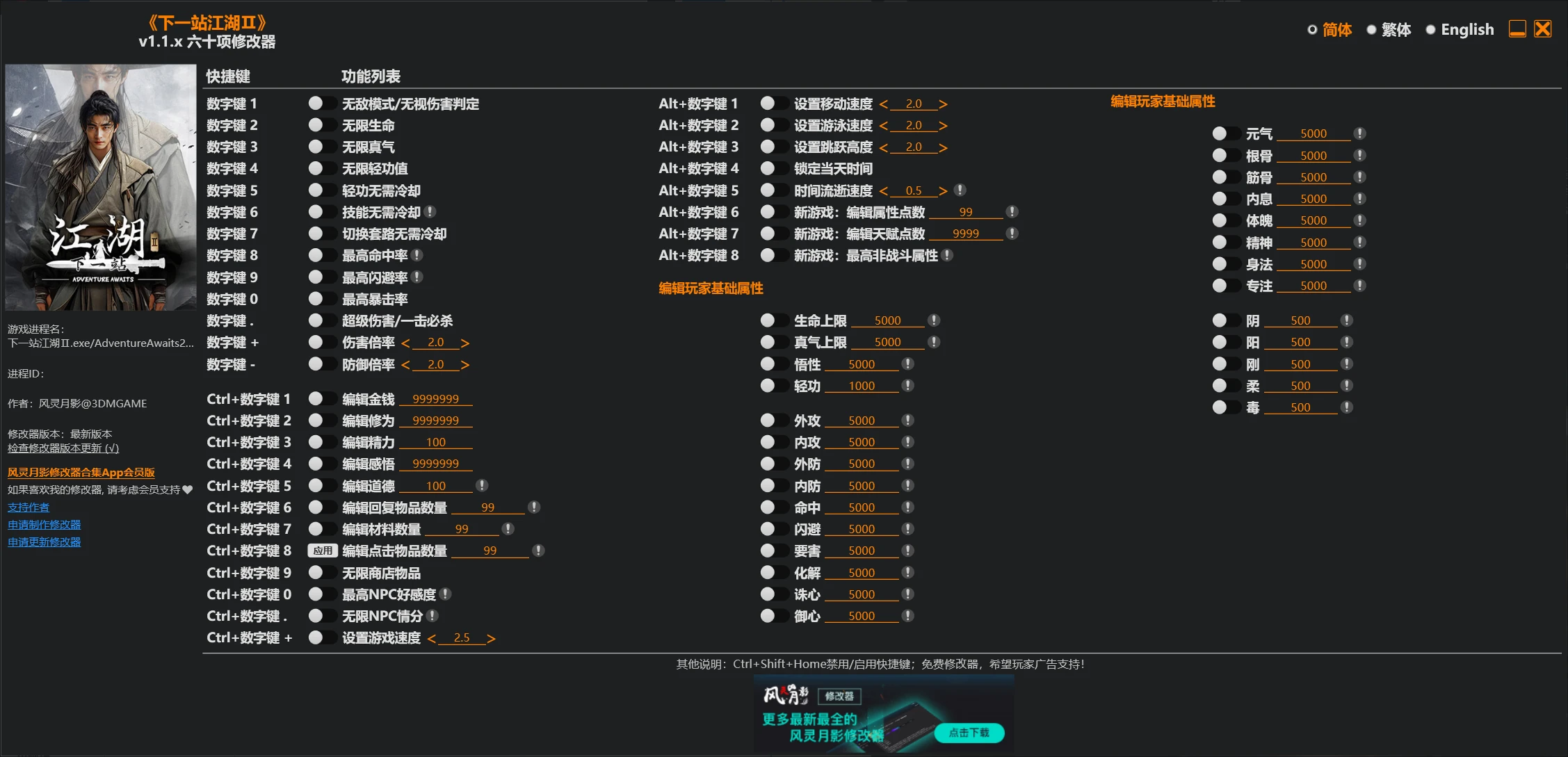 先打开修改器,再打开游戏,使用快捷键和按钮启用功能即可