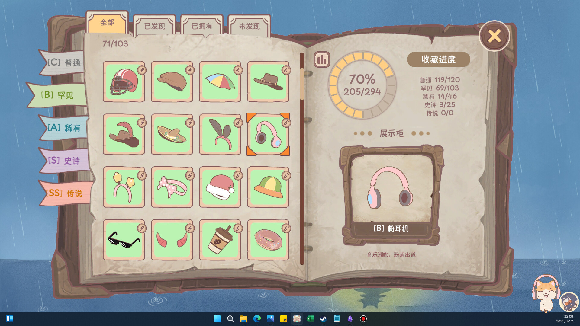 游戏中,一只名叫 Miino 的桌面猫咪会常驻在屏幕边缘,你学习、工作或摸鱼时,它都会静静相伴。每 30 分钟开启礼盒,随机获得头饰,可收集、合成或交易。