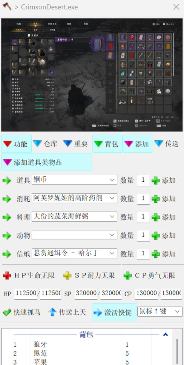 论坛 蒸汽游戏宝库论坛 《红色沙漠》 [修改器] 分享红色沙漠修改器 小斧头... 通知 Clear all [修改器] 分享红色沙漠修改器 小斧头修改器 简单好用 支持Steam最新版 《红色沙漠》 最近一次发帖 发布者 热心网友分享 2 小时 前 1 帖子 1 用户参与 0 点赞 3 查看 RSS 热心网友分享 (@wangjieqing) Lv.6 老牌玩家 Admin 加入时间: 2 月 前 帖子: 508 话题发起人 06/04/2026 10:50 上午 更新1.02,支持正版,不过我看功能不多,群里今天刚发,应该还在制作,如果更新了我传到网盘说是要彻底进入游戏才会成功加载 AXTrainer_25.3_红色沙漠.rar 引用 话题标签 修改器