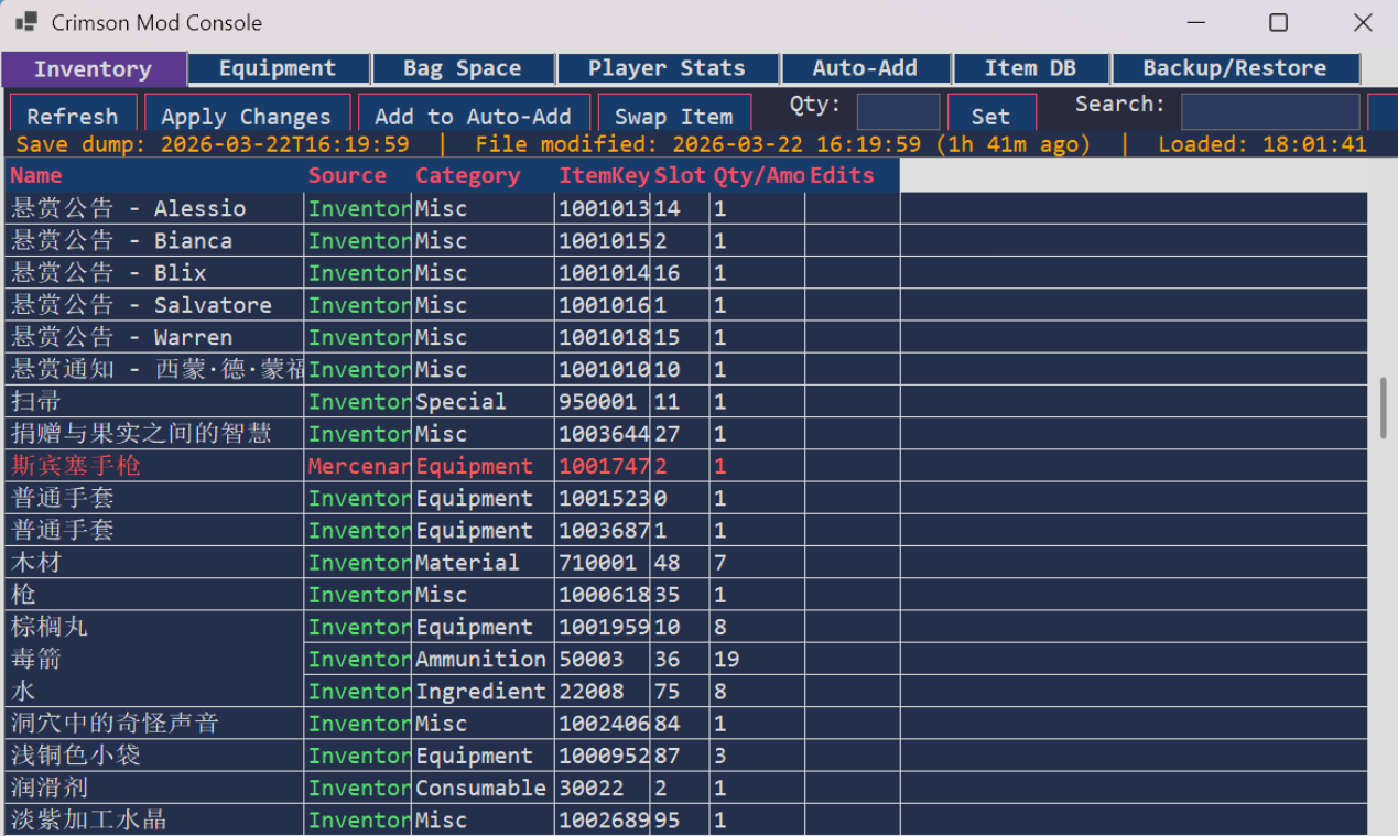 (球球大伙给点回复,写代码/翻译不容易)使用简单的python代码将原始物体ID列表翻译并转换为了json格式,可导入控制台MOD,显示中文名称,方便查找(单纯机翻),如果有小伙伴有更好的翻译或者提取/汇总了官方译本可以提供给我。