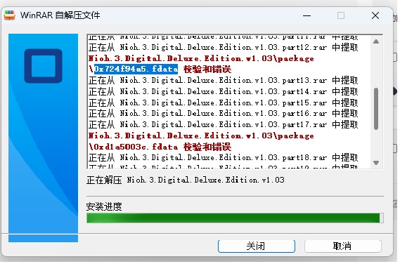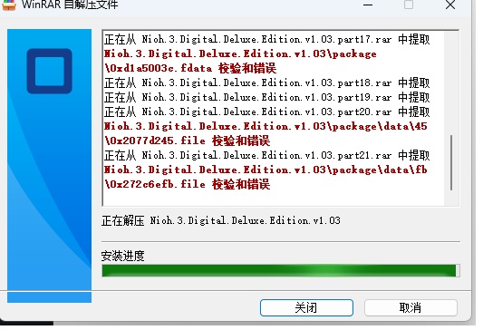 正在从 Nioh.3.Digital.Deluxe.Edition.v1.03.part21.rar 中提取