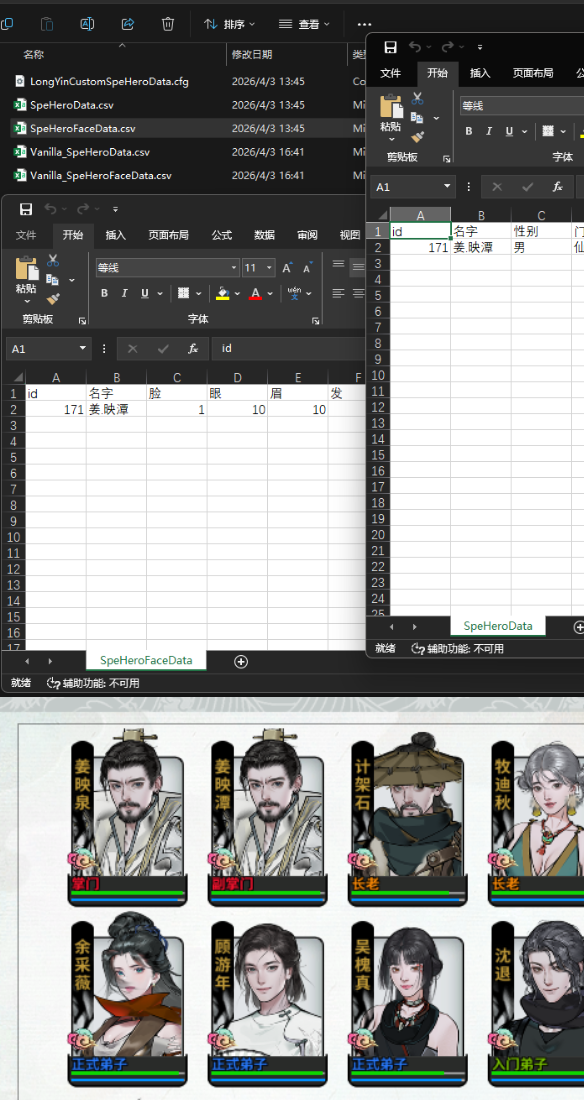 如题,是一个通过配置文件修改或新建特殊人物的mod,启动游戏后自动生成配置文件,位置在LongYinLiZhiZhuan\UserData\LongYinCustomSpeHeroData