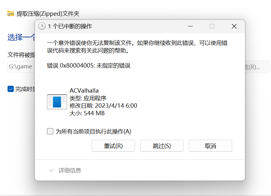 被微软的安全中心杀了吧?暂时关掉实时保护试一试(前提是确认文件安全)。