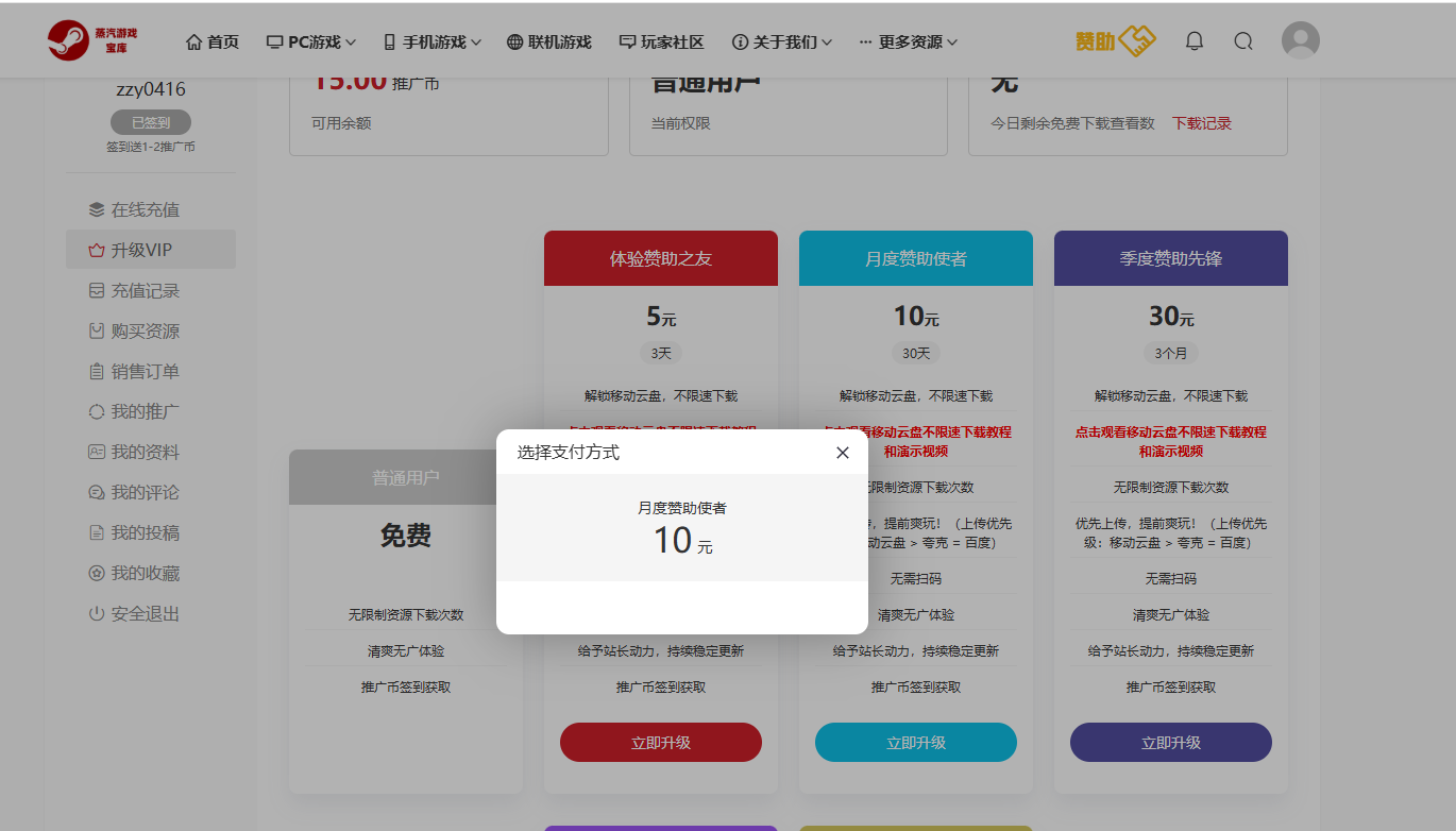 论坛 蒸汽游戏宝库论坛 求资源区 怎么支付赞助? 通知 Clear all 怎么支付赞助? 求资源区 最近一次发帖 发布者 zzy0416 2 周 前 1 帖子 1 用户参与 0 点赞 25 查看 RSS zzy0416 (@zzy0416) Lv.1 见习玩家 Registered 加入时间: 2 月 前 帖子: 3 话题发起人 07/04/2026 7:02 上午 没看见如何选择支付,问问 20d7726f-e05b-4f76-b2ad-235661341ce1.png 引用