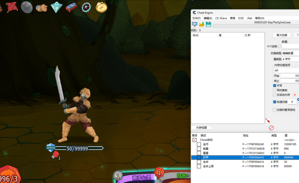 启动游戏后请进入任意关卡后,再勾选CT表中的"Cheat启动",会自动展示所有可修改内容(如果是问号请稍等),支持锁定,随意修改.